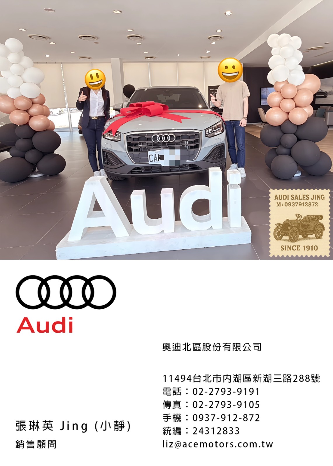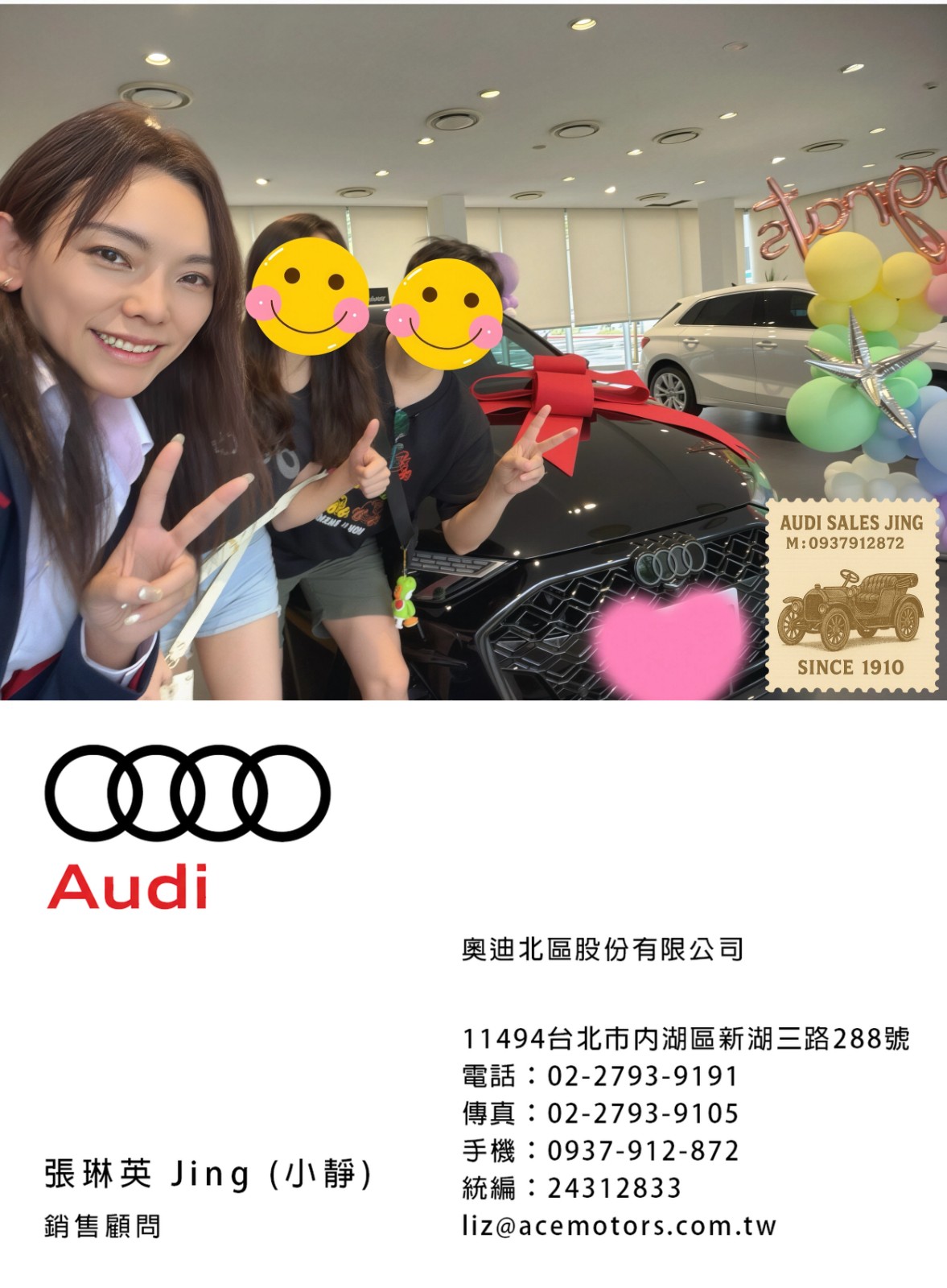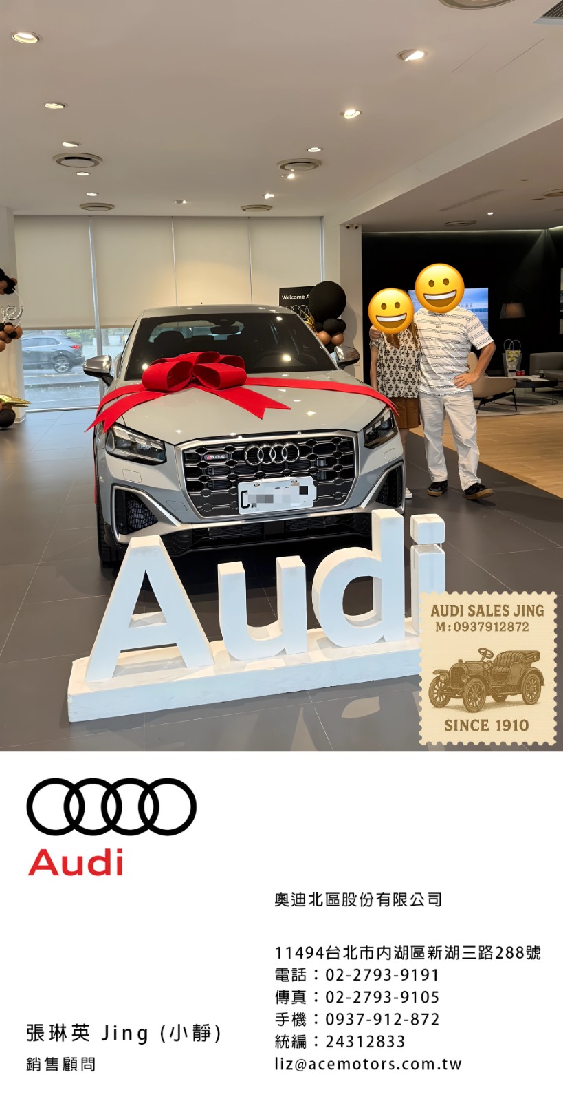 奧迪業務 張琳英 Jing 銷售顧問 | 手機:0937-912-872 | 奧迪業務薪水 | 奧迪業務ptt | audi業務推薦 | 奧迪面試ptt | 奧迪女業務 | 喜歡跳舞的audi業務 | 奧迪徵才 | 奧迪104 | Audi A3 交車 | Audi A3 車主心得 | 奧迪 A3 2023