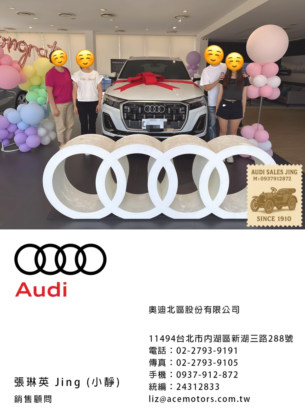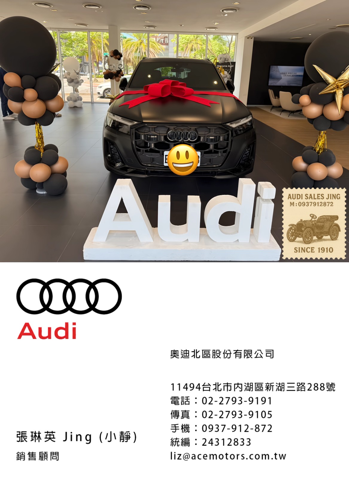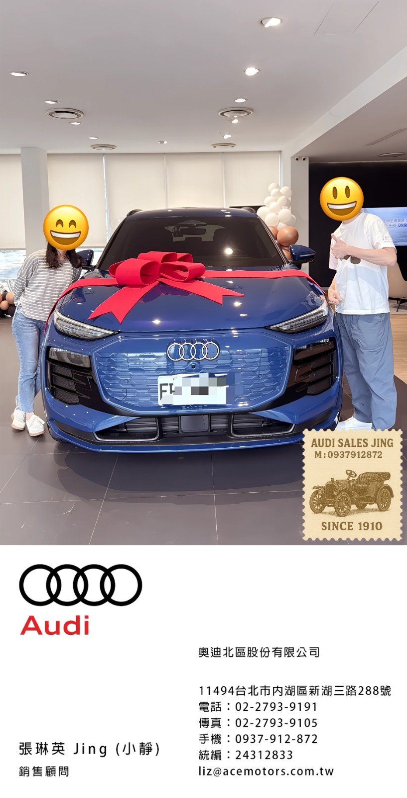 奧迪業務 張琳英 Jing 銷售顧問 | 手機:0937-912-872 | 奧迪業務薪水 | 奧迪業務ptt | audi業務推薦 | 奧迪面試ptt | 奧迪女業務 | 喜歡跳舞的audi業務 | 奧迪徵才 | 奧迪104 | Audi A3 交車 | Audi A3 車主心得 | 奧迪 A3 2023